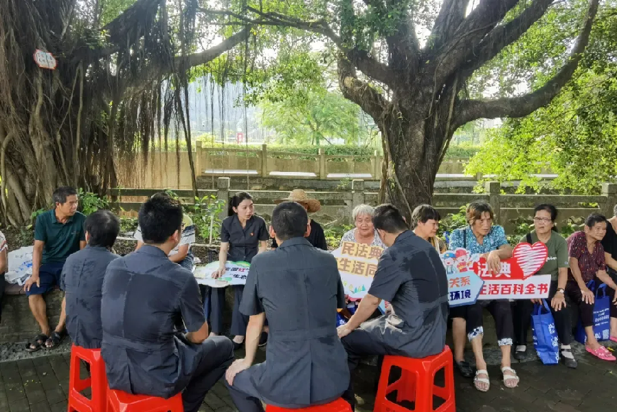 ▲有獎知識問答 本次活動深入鄉(xiāng)村,將法律知識和司法服務送到村民家門口,讓更多的村民了解法律、掌握法律,從而提高村民的法律意識,構(gòu)建更加和諧、文明、法治的鄉(xiāng)村社會。 接下來,中山法院將深入創(chuàng)建“楓橋式人民法庭”,秉承“抓前端、治未病”的司法理念,主動融入“1+6+N”基層社會治理工作體系,深入開展普法進基層活動,高效實質(zhì)化解糾紛,繪就基層治理“新楓景”。