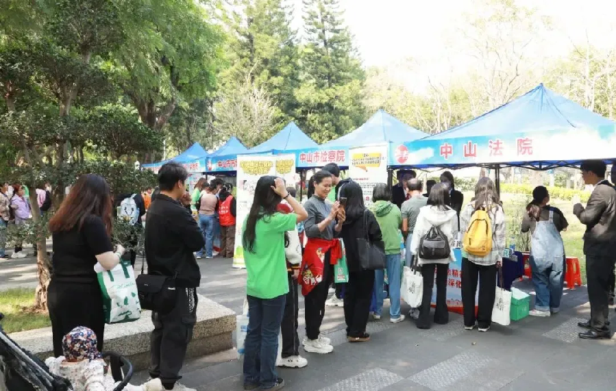 ▲中山中院、市第一法院在法治文化公園開展憲法宣傳活動。