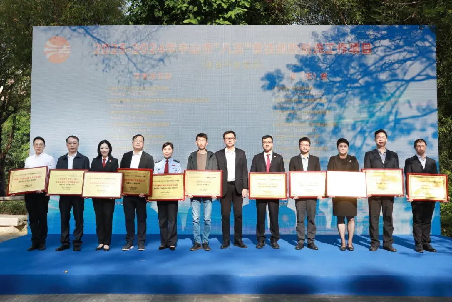 ▲中山中院黨組書記、院長廖萬春為“十佳劇本”獲獎?wù)哳C獎。 “中山法院普法真的叻” 今年中山法院普法工作榮譽滿滿。中山市中級人民法院獲評全國“八五”普法中期表現(xiàn)突出的單位,被全國通報表揚。中山兩級法院在2024年中山市“八五”普法創(chuàng)新創(chuàng)先和優(yōu)秀普法工作項目征集評選活動中,攬獲創(chuàng)新創(chuàng)先工作項目、優(yōu)秀普法工作項目、優(yōu)秀組織單位獎等7個獎項,形成了“法治中山、普法標桿”的生動局面。