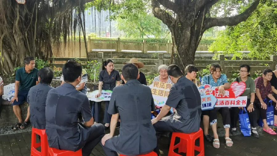 ▲三鄉(xiāng)法庭法官在板芙鎮(zhèn)里溪村的榕樹下為群眾普法。 此外,三鄉(xiāng)法庭聯(lián)動(dòng)多部門堅(jiān)持發(fā)揮“調(diào)解指導(dǎo)”及“非訴解紛機(jī)制”,利用多種創(chuàng)新方式方法如“暢通渠道+示范調(diào)解”“聯(lián)動(dòng)解紛”等,有效化解了多起涉102名業(yè)主購房糾紛、200位勞動(dòng)者追索勞動(dòng)報(bào)酬糾紛等群體性糾紛,取得了良好的政治效果、法律效果和社會(huì)效果。 接下來,市第一法院三鄉(xiāng)法庭將持續(xù)發(fā)力,通過聯(lián)動(dòng)多部門力量創(chuàng)新工作機(jī)制,加強(qiáng)矛盾糾紛源頭化解、實(shí)質(zhì)化解,用實(shí)際行動(dòng)繪就創(chuàng)建“楓橋式人民法庭”的嶄新畫卷。