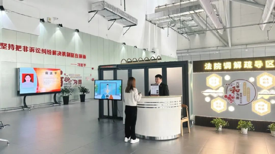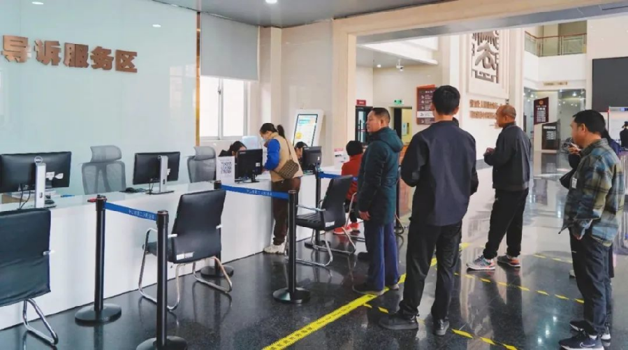 ▲當(dāng)事人在導(dǎo)訴服務(wù)區(qū)有序等候