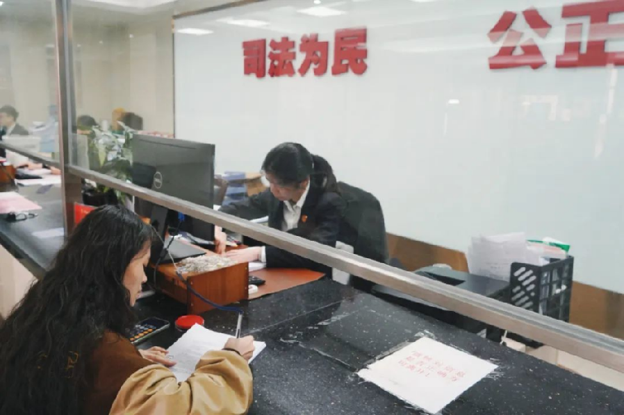 ▲在執(zhí)行立案訴導(dǎo)臺(tái),工作人員向當(dāng)事人提供耐心指引