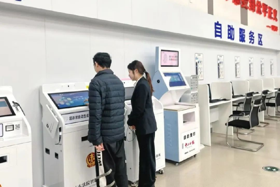 ▲立案工作人員指導(dǎo)群眾使用訴狀自動(dòng)生成機(jī)