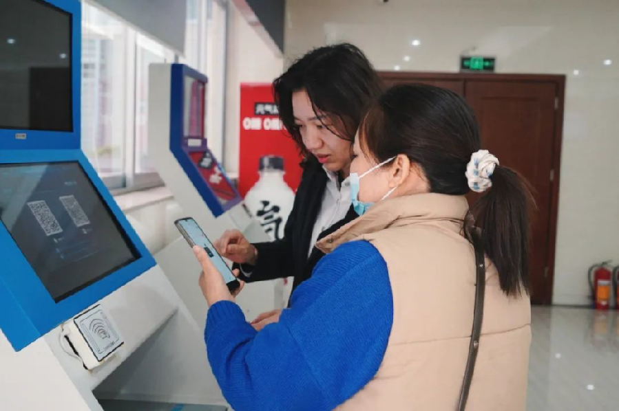▲訴訟服務(wù)中心干警教導(dǎo)當(dāng)事人使用自助服務(wù)機(jī) “春節(jié)假期后首個(gè)工作日,中山法院訴服中心網(wǎng)上審核353件,接待122人次,現(xiàn)場(chǎng)立案51件,前臺(tái)來電136人次”,中山中院立案一庭副庭長(zhǎng)秦燕介紹。