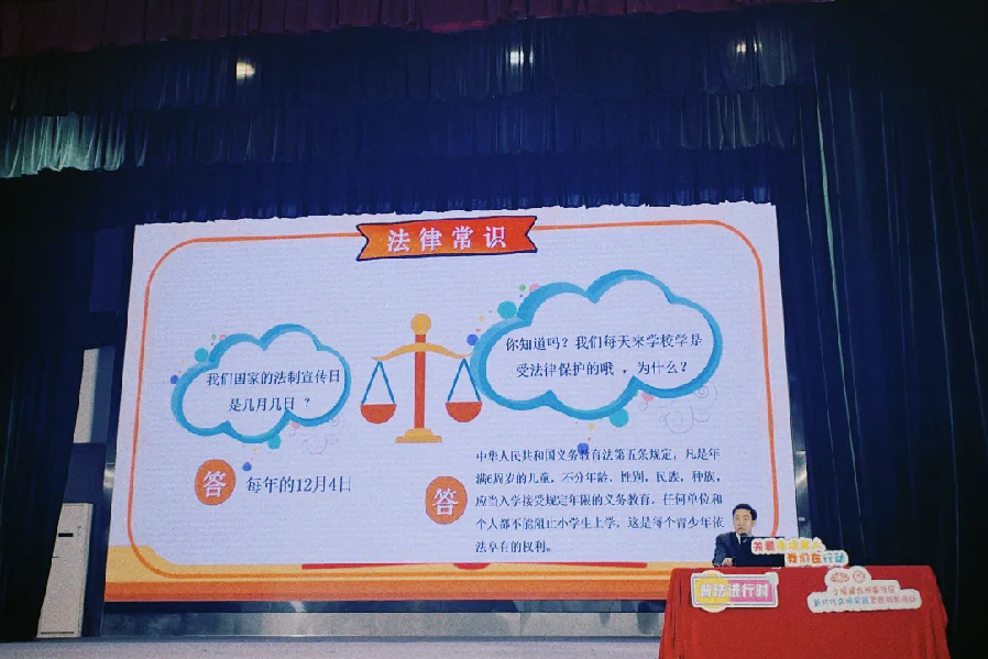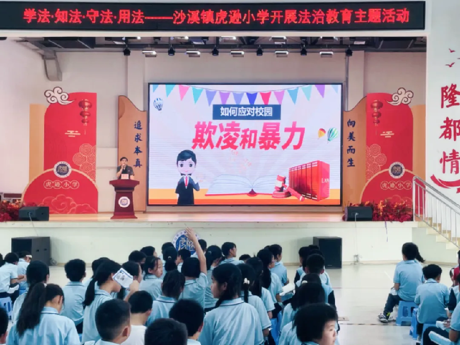 在沙溪鎮(zhèn)虎遜小學(xué),市第二法院綜合審判庭庭長瞿兵為高年級同學(xué)們作法治安全教育講座。瞿法官以通俗易懂的語言,結(jié)合真實(shí)且發(fā)人深省的案例,深入淺出地講解了與小學(xué)生日常學(xué)習(xí)生活緊密相關(guān)的法律知識。在場同學(xué)們?nèi)褙炞?,踴躍互動。