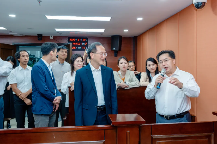 ▲在中山法院訴訟服務(wù)中心合影 國(guó)家法官學(xué)院院長(zhǎng)、最高人民法院司法案例研究院院長(zhǎng)李成玉,澳門法律及司法培訓(xùn)中心主任高炳坤,澳門特區(qū)終審法院書記長(zhǎng)梁楚紅,廣東省高級(jí)人民法院副院長(zhǎng)李克儉,中山市中級(jí)人民法院院長(zhǎng)廖萬(wàn)春出席活動(dòng)。