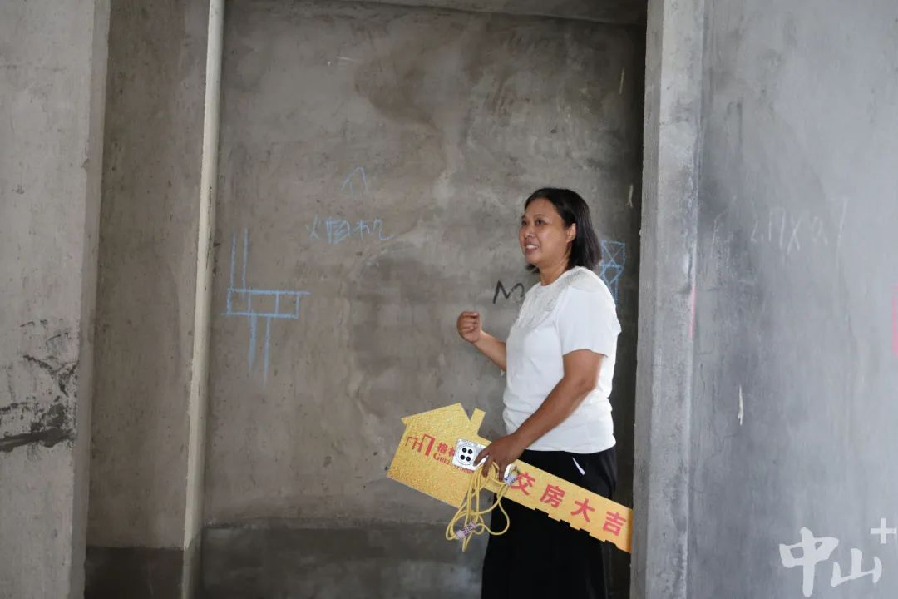 ▲現(xiàn)場可感受到業(yè)主發(fā)自內(nèi)心的喜悅。 業(yè)主何雪婷迫不及待地掏出鑰匙,帶記者走進她的房子,“以后這里放沙發(fā),這里是入戶柜。”她邊比劃邊表示準備盡快裝修,希望能在10月入伙,“謝謝政府下這么大力度幫我們安家,今天拿到房產(chǎn)證了才感覺這里是真正的家?!彼龝诚胫院蟮男律睿鹤陉柵_的休閑椅上看夜景,在樓下散散步,和鄰居串串門。