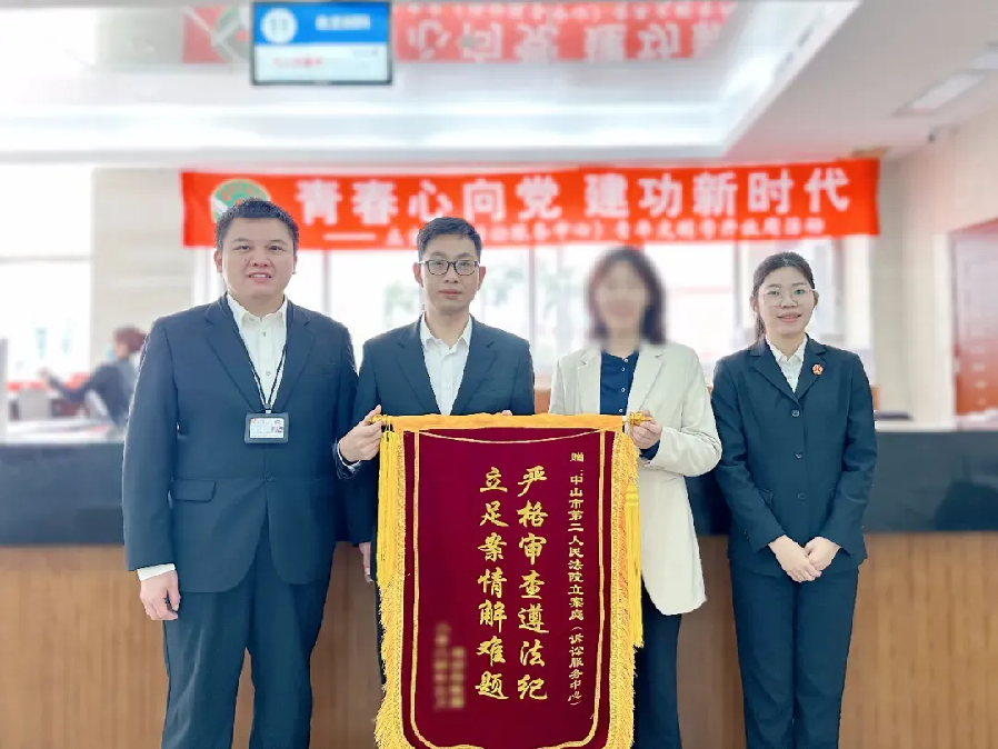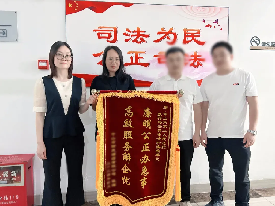 錦旗×3! 近日,市第二法院連續(xù)收到群眾送來的三面錦旗,一起來看看錦旗背后的故事。 涉及21萬元存款,僅2天迅速化解糾紛 “如果沒有及時完成解封,我們公司運(yùn)營就很困難了,感謝法院的快速高效!”中山某酒店公司(化名)負(fù)責(zé)人將一面寫有“廉明公正辦急事,高效服務(wù)解企憂”的錦旗送到市第二法院訴訟保全團(tuán)隊(duì)手上,為他們的高效、快速辦案表示感謝。