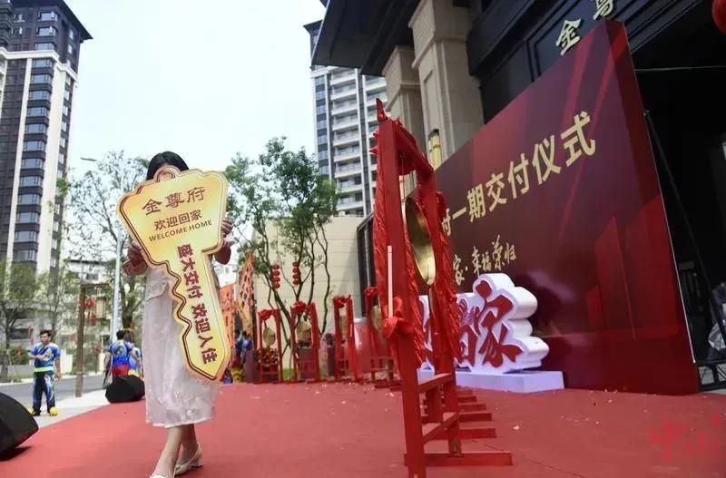 ▲5月15日,橫欄鎮(zhèn)金尊府一期項(xiàng)目交付業(yè)主。記者