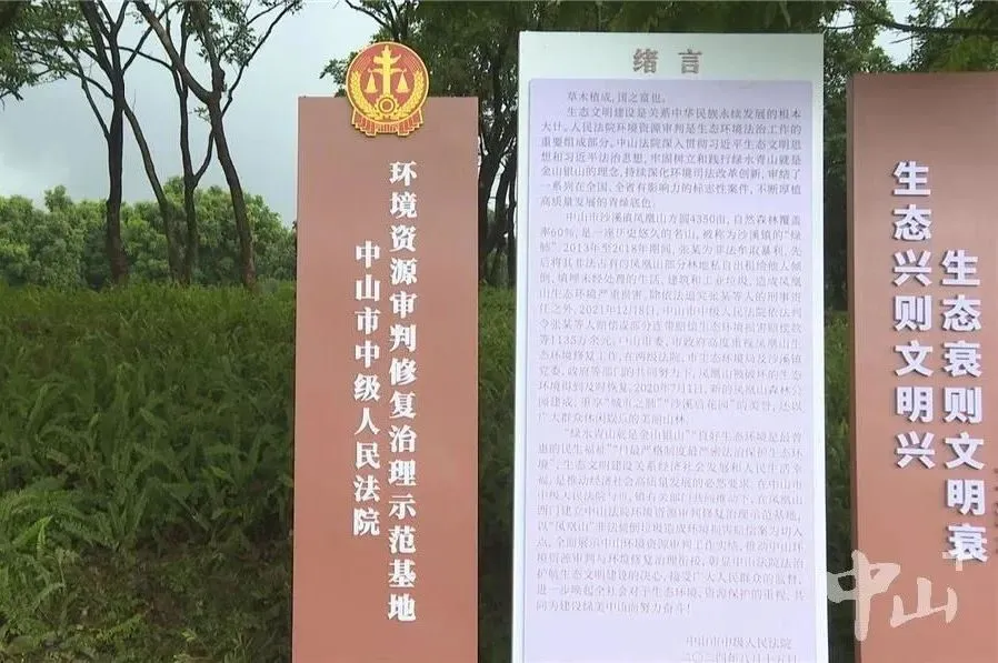 ▲中山中院設(shè)立環(huán)境資源審判修復(fù)治理示范基地。 《白皮書》介紹,近年來,中山法院堅持以人民為中心,將環(huán)境資源審判放在審判工作的重要位置,認真貫徹落實省委“1310”具體部署、市委關(guān)于打贏打好水污染治理攻堅戰(zhàn)工作部署,推動一系列改革創(chuàng)新措施落地落實。2022年1月1日,中山中院正式施行環(huán)資刑事、民事、行政“三合一”審判制度,是全省最早完成環(huán)資審判“三合一”建設(shè)的中級法院之一;2024年1月1日,中山市第一人民法院對全市基層法院一審環(huán)境資源案件集中管轄,依法加強重點區(qū)域、重要流域的生態(tài)保護,讓綠色成為中山高質(zhì)量發(fā)展的鮮明底色。 一是依法嚴厲打擊水污染違法犯罪行為,依法加大罰金刑適用力度、準確適用懲罰性賠償。依法審理了中央生態(tài)環(huán)境保護督查組督查的符某貴5人非法洗砂污染環(huán)境案,以及涉案金額近千萬的珂寧公司偷排廢液案、岡山精工公司非法處置工業(yè)廢水案、梁某棠10人非法洗砂污染環(huán)境案等重大涉水污染案件。 二是堅持恢復(fù)性司法理念,注重預(yù)防、懲治和修復(fù)相結(jié)合。中山中院在中山市沙溪鎮(zhèn)鳳凰山森林公園設(shè)立“環(huán)境資源審判修復(fù)治理示范基地”,在中山市橫欄司法所設(shè)立首個環(huán)資審判勞務(wù)代償工作站,探索創(chuàng)新補植復(fù)綠、增殖放流、勞務(wù)代償、技改抵扣等裁判執(zhí)行方式。